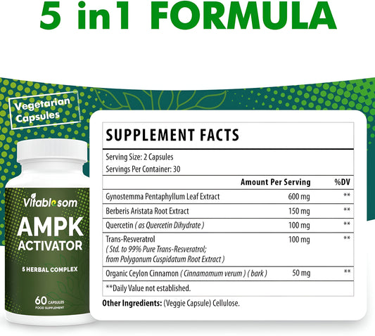 AMPK Suplemento activador, 5 en 1 Jiaogulan Gynostemma AMPK activador metabólico 60 cápsulas vegetarianas