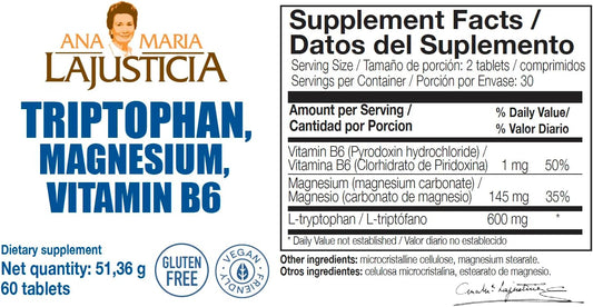 Ana Maria La Justicia- Pack Tryptophan (magnesium- vitamina B6), tryptophan(melatonina),tabletas