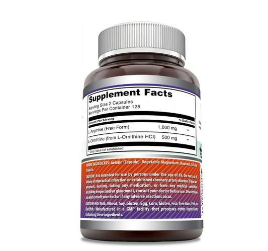 Amazing Formulas - L-arginina/L-ornitina 1500 Mg por Porción - 250 Cápsulas