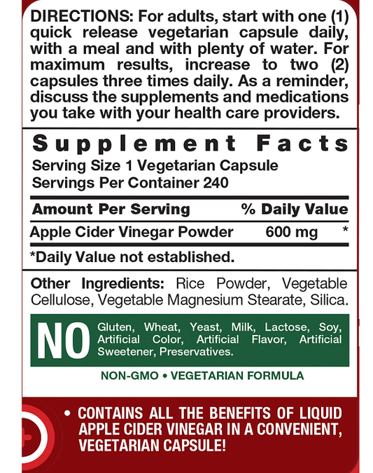 Apple Cider Vinegar Nature's Truth 240 Capsulas 600 mg