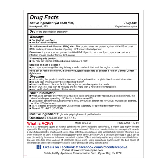 Anticonceptivo Vaginal en Lamina para Mujer VCF Contraceptive Film 9 unidades.