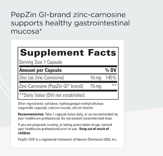 Integrative therapeutics, zinc - carnosine pepzin GI Brand, 60 capsulas veg
