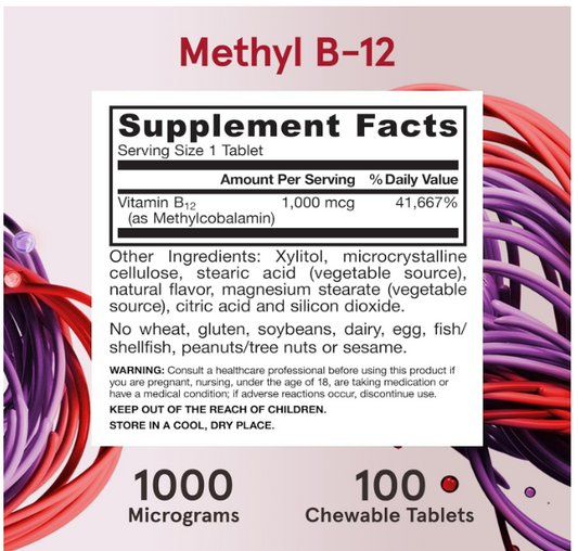 Jarrow Formula Vegan- Methyl B-12 1000mg, 100 tabletas masticables