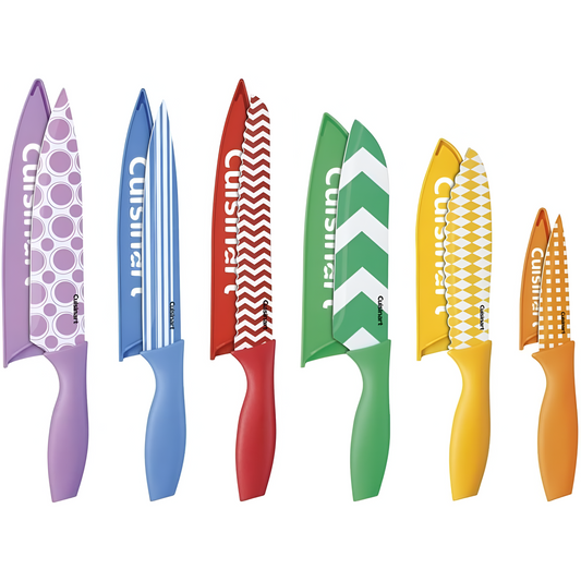 Juego de Cuchillos impresos en color con protectores de cuchilla, 12 piezas, multicolor