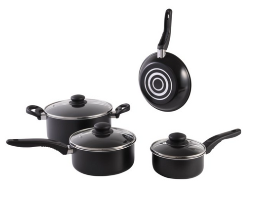 Juego de ollas de cocina antiadherentes Mainstays 7 piezas, color negro