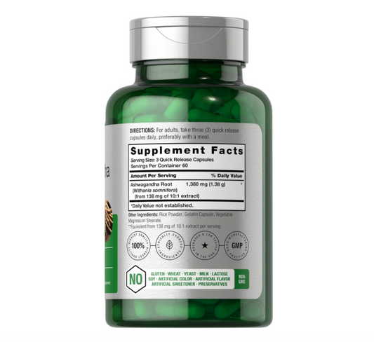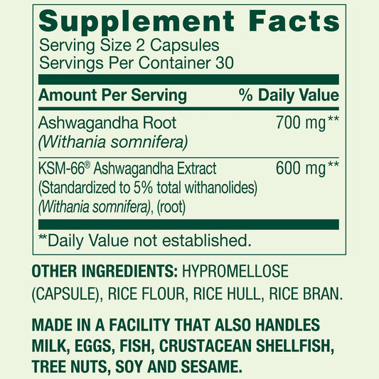 Ashwagandha 1300mg extra fuerte, 60 capsulas- Spring Valley
