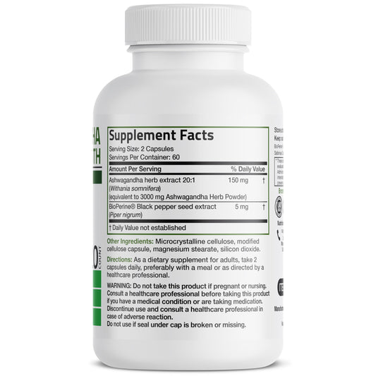 Ashwagandha Bronson Extra Fuerte , modo y estress con BioPerina - 120 Capsulas