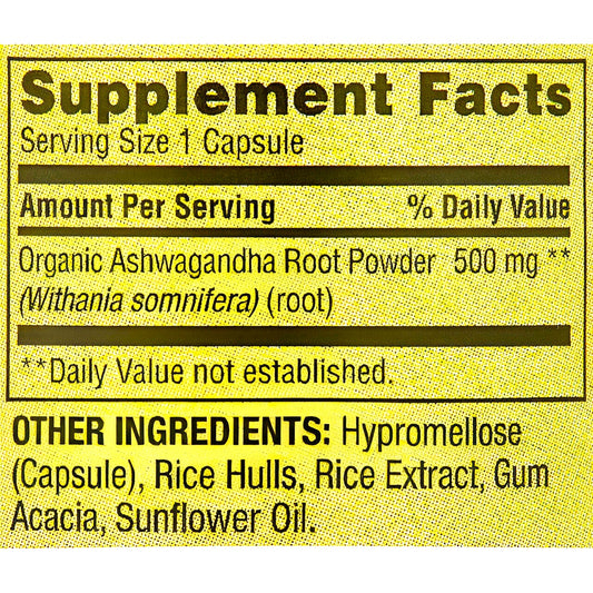 Ashwagandha 500mg , 60 capsulas vegetarianas - Spring Valley