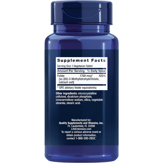 Life Extension - High Potency Optimized Folate L-Methylfolate 8500 mcg DFE, 30 tabletas vegetarianas