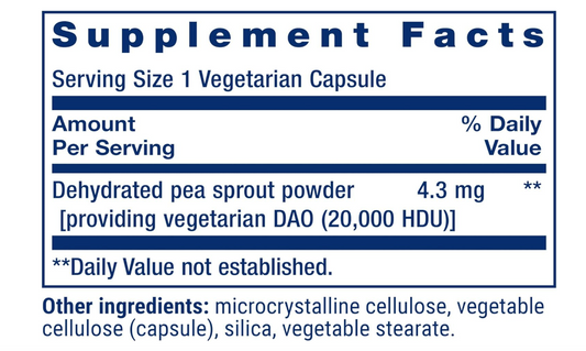 Life Extension DAO Food Sensitivity Relief -Alivio de la sensibilidad alimentaria con diamina oxidasa (DAO), 60 capsulas