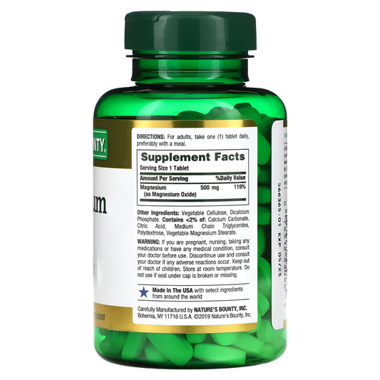Magnesio 500mg , 200 tabletas recubiertas - Natures Bounty