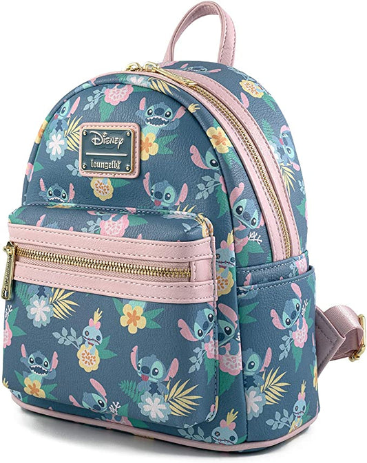 Loungefly x Disney Lilo & Stitch - Mini mochila de piel sintética con estampado completo, Azul