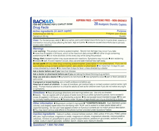 Backaid Analgésico de Espalda de Máxima Potencia Fórmula de 6 Horas, Comprimidos sin Aspirina, 28 Unidades