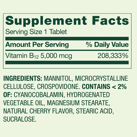 B12 spring valley tabletas extra fuertes de disolución rápida - sabor cereza, 5000 mcg, 300 unidades