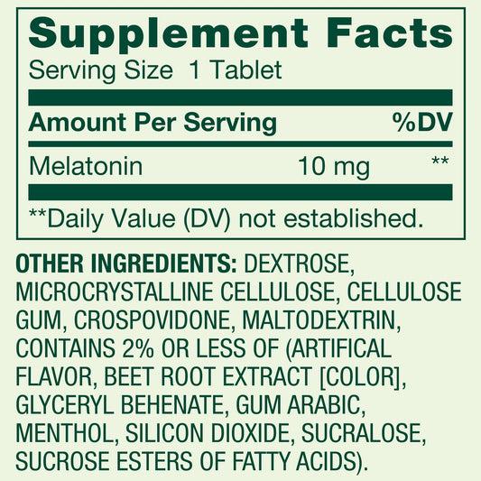 Melatonina 10mg Fast Dissolve , 120 tab sabor a fresa - Spring Valley