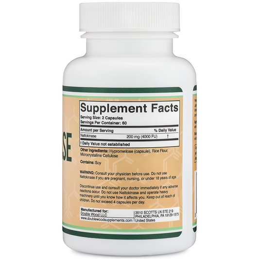 Nattoquinasa 4,000 FU, 120 Cápsulas (derivadas de Natto japonés) Enzimas sistémicas Soporte circulatorio Double Woods