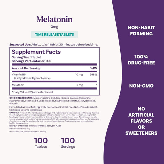 Natrol Sleep - Melatonina 3mg Time release, 100 tabletas sin sabor