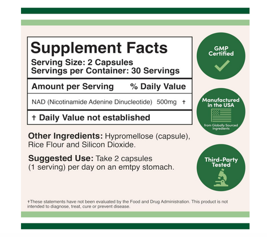 NAD+ 500mg , 60 capsulas - Double Wood