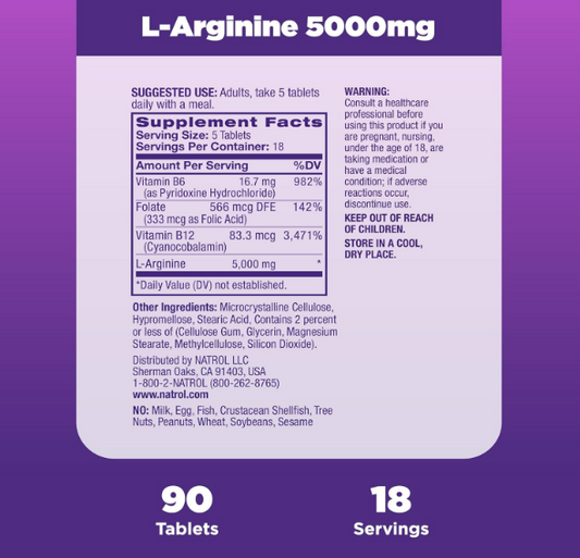 Natrol , L-Arginine 5000mg , mens health - 90 tabletas