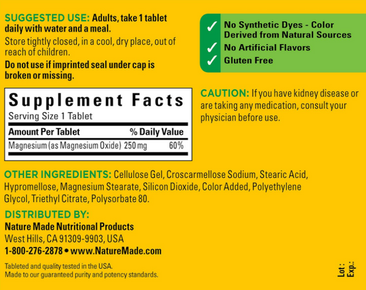 Nature Made Óxido de magnesio 250 mg , 200 tabletas