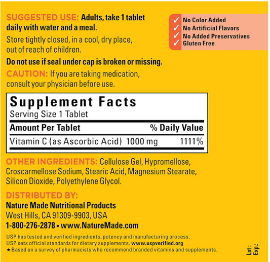 Nature Made- Vitamina C extra fuerte 1000mg, 300 tabletas