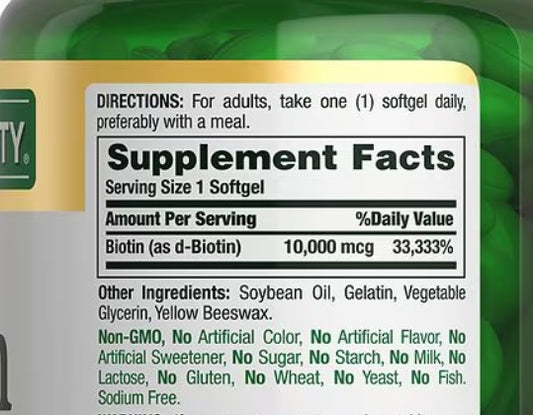 Nature's Bounty Biotin 10,000mcg 180 Capsulas de gel de liberación rápida
