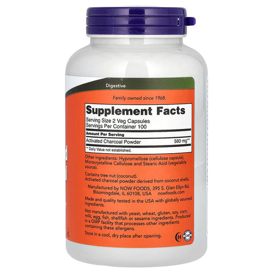 Now - Activated Charcoal(detox support) , 200 capsulas