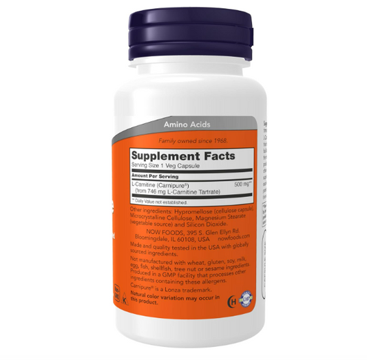 NOW L-carnitina 500 mg , 60 capsulas vegetarianas