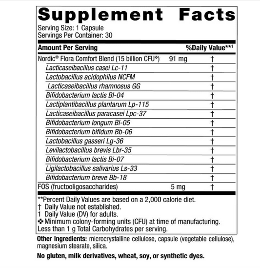 Nordic Naturals Nordic Flora Probiotic Comfort - 30 cápsulas - 13 cepas probióticas con 15 mil millones