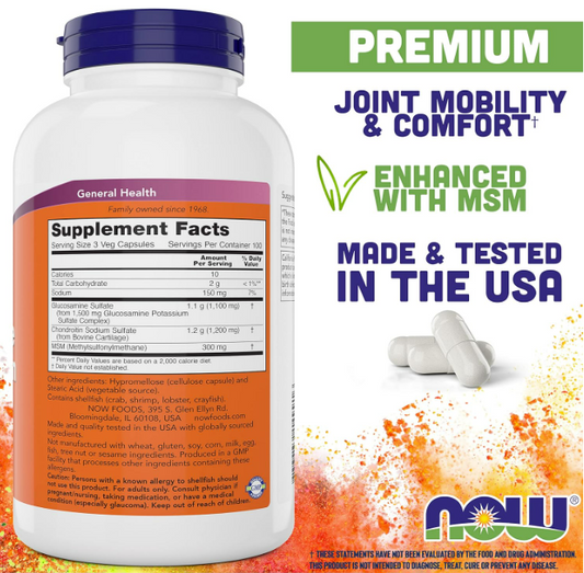 Now - Glucosamina y Chondroitin con MSM , 300 capsulas vegetables