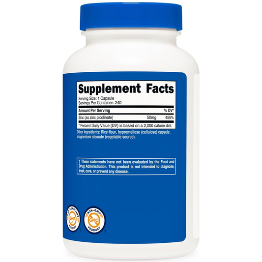 Nutricost - Picolinato de Zinc 50 mg, 240 cápsulas