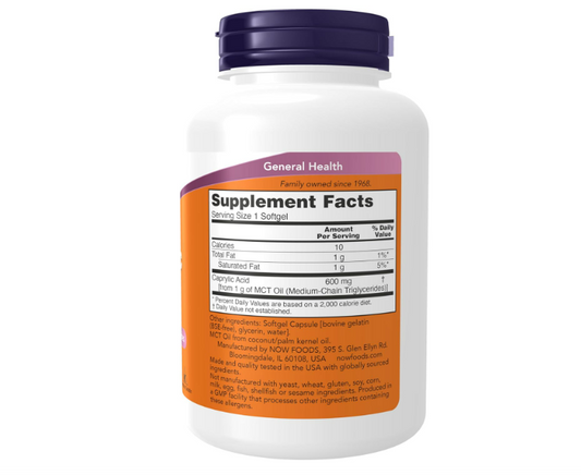 NOW- Ácido Caprílico 600 mg , 100 capsulas