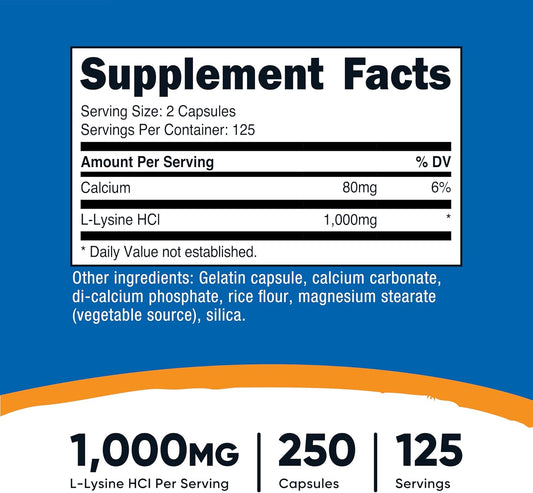 Nutricost - L- Lysine / L- Lysine HCI 1000mg, 250 Capsulas