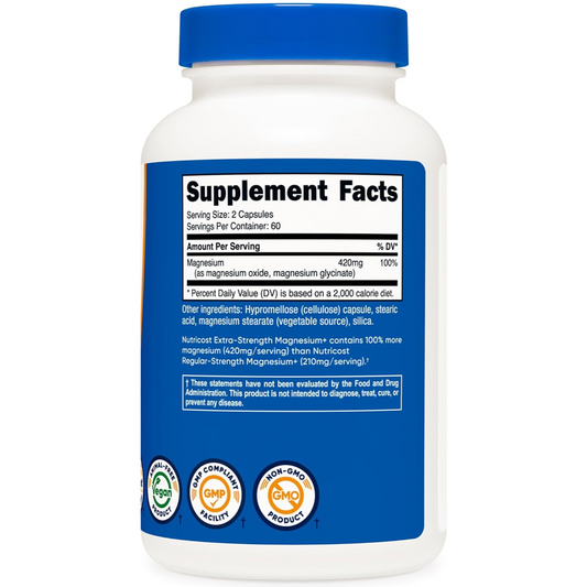 Nutricost magnesio + extra fuerte 420 mg, 120 cápsulas - 60 porciones