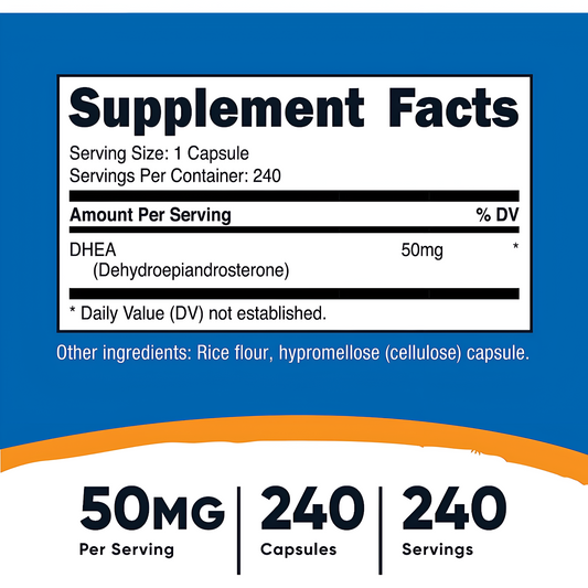 Nutricost DHEA 50 mg, 240 cápsulas, sin gluten, sin soja, sin OMG, suplemento