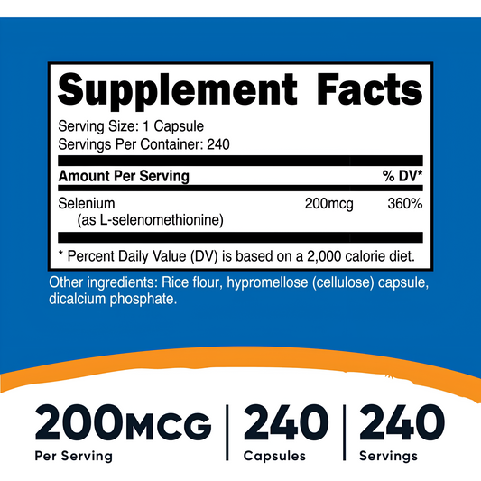 Nutricost Selenio 200mcg, 240 cápsulas vegetales Sin OMG, sin gluten, L-selenometionina