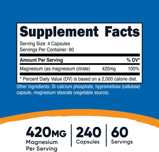 Nutricost Citrato de magnesio 420 mg, 240 capuslas