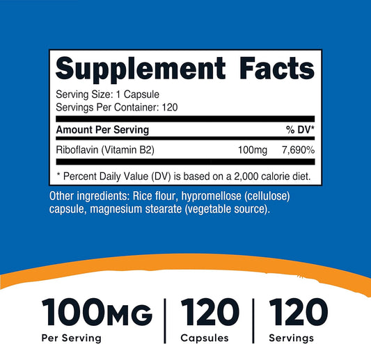 Nutricost - Vitamina B2 Riboflavin 100mg, 120 capsulas
