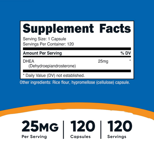 Nutricost DHEA 25 mg, 120 cápsulas - Sin gluten, sin soja, sin OMG, suplemento