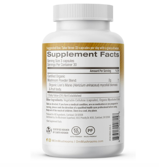 Om Mushroom 2000mg Superfood , Melena de Leon - 90 capsulas