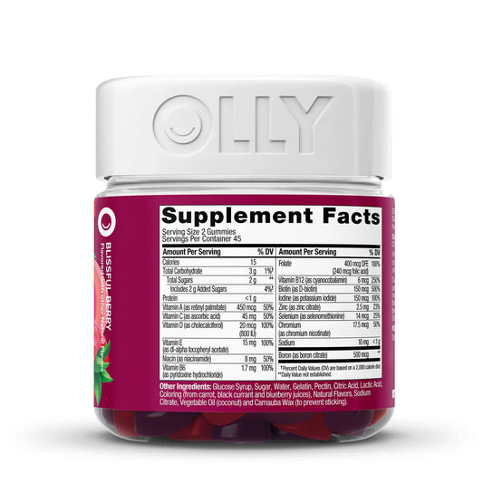 OLLY Women's Multi Vitamin Gummies with Biotin, Blissful Berry 90 gummies