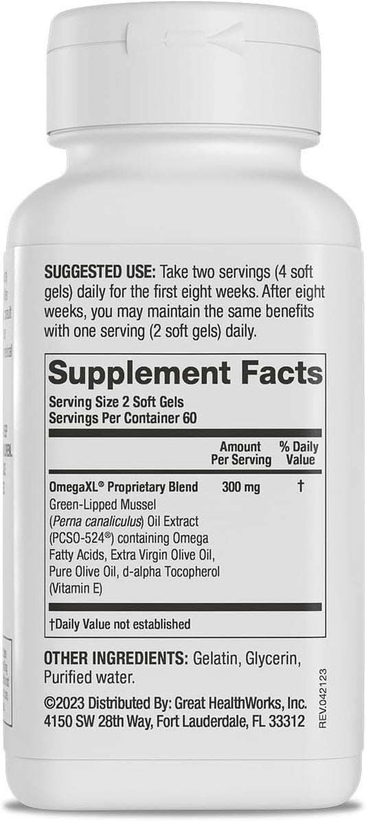OmegaXL Joint Support Supplement - Natural Muscle Support, Green Lipped Mussel Oil,120 Capsulas de Gel