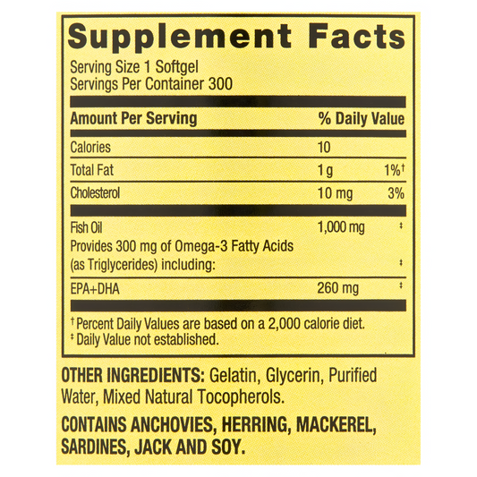 Omega-3 Fish Oil Spring Valley 1000mg 300 capsulas de gel