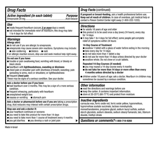 Omeprazole 20 mg.Kirkland Signature, 42 Tabletas.