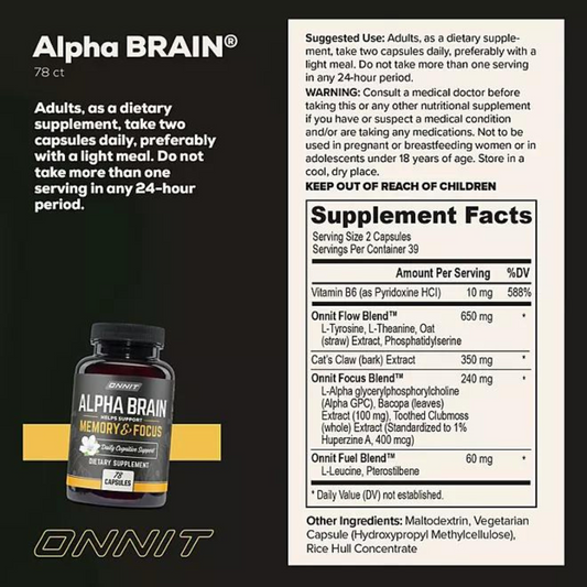 ONNIT Alpha BRAIN Suplemento nootrópico premium para la salud cerebral' 78 cápsulas