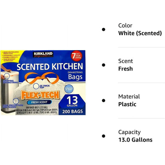 Kirkland Signature Flex-Tech, bolsas de basura perfumadas de 13 galones, 200 unidades