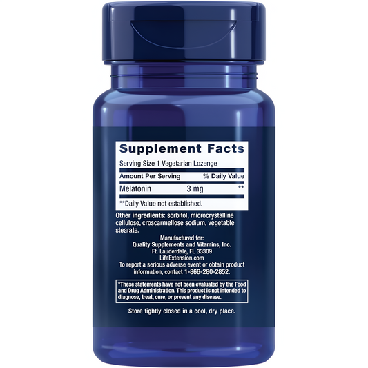 Life Extension, Melatonina 3 mg(Lozenges) - 60 Pastillas de disolucion rapida