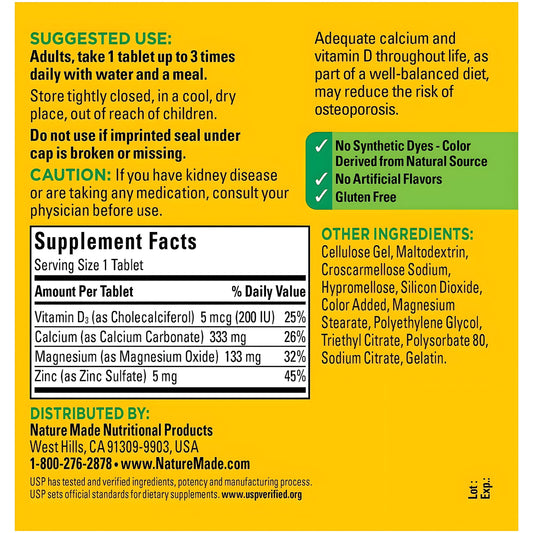 Nature Made Calcio Magnesio Zinc con vitamina D3 300 tabletas