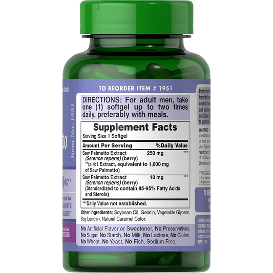 SAW PALMETTO EXTRACT 180 CAPSULAS - PURITAN'S PRIDE