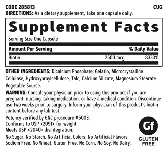 AgotadoBiotin 2500mg GNC , 120 capsulas